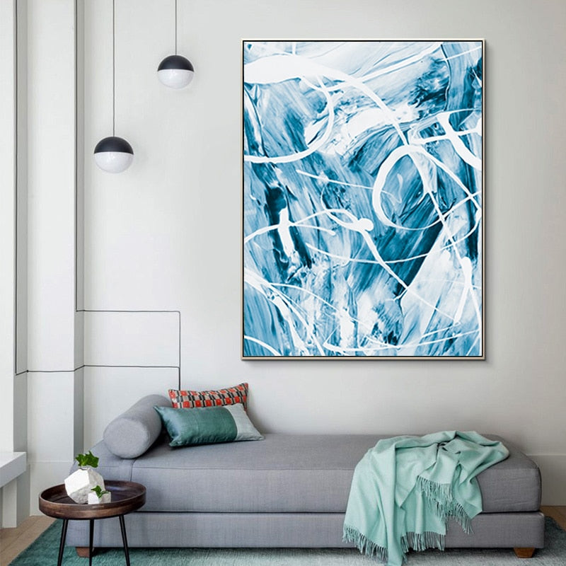 Blue Abstract Canvas Paintings Wall - Canvas Wall Art Painting