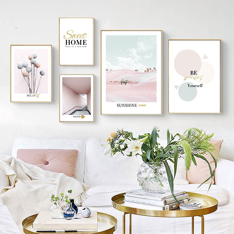 Light Pink Nordic Abstract Scene Gallery - Canvas Wall Art Painting