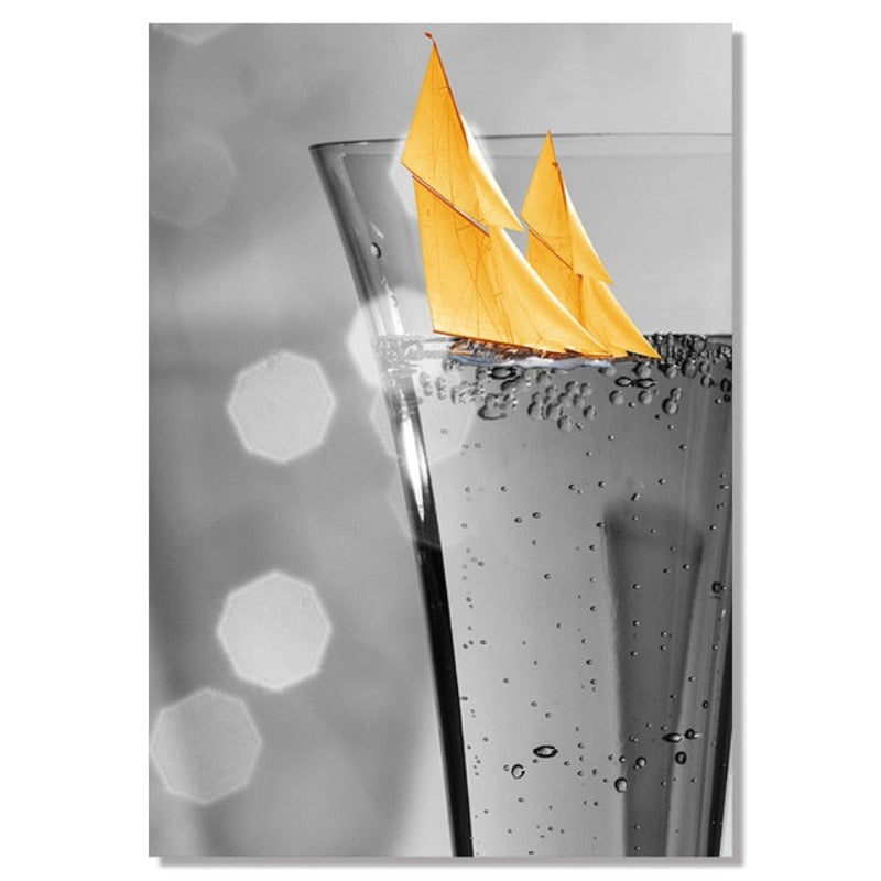 Black Wine Glass With Boat Wall Art - Canvas Wall Art Painting