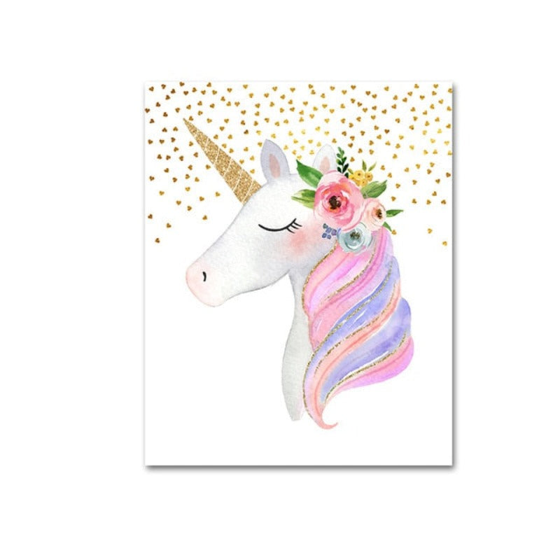 Modern Cartoon Pink Unicorn - Canvas Wall Art Painting