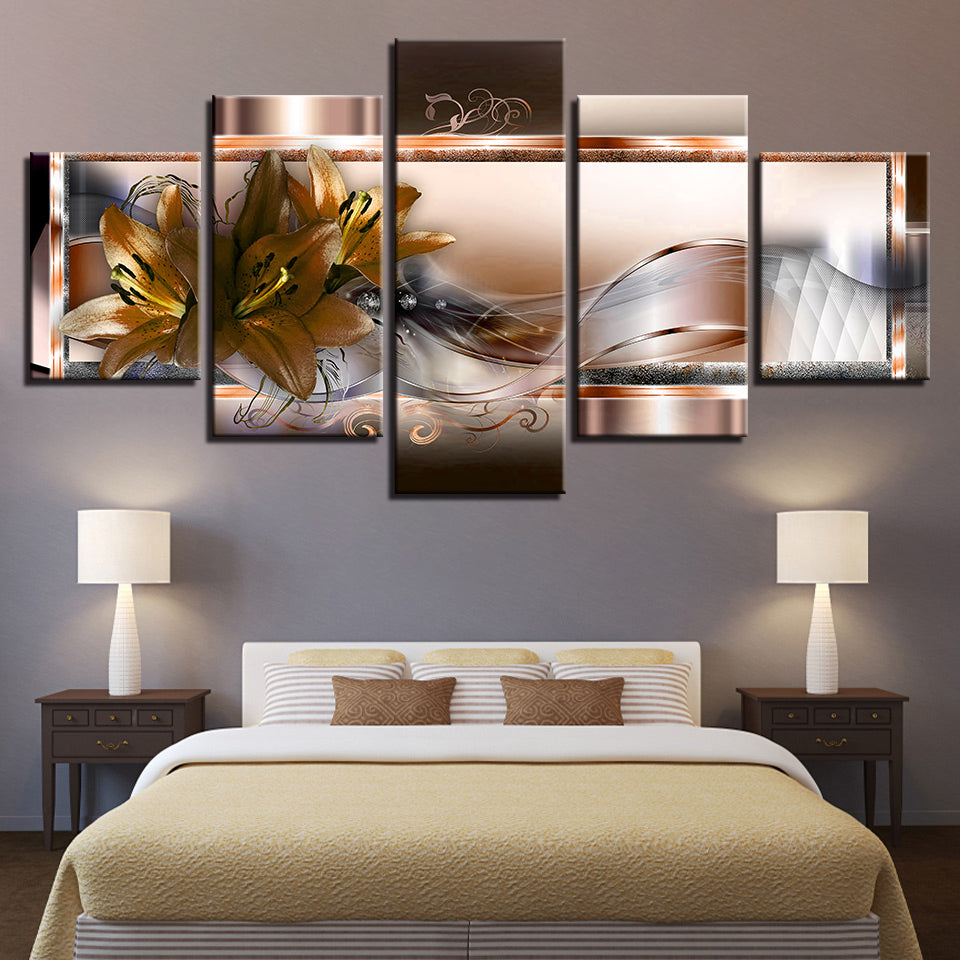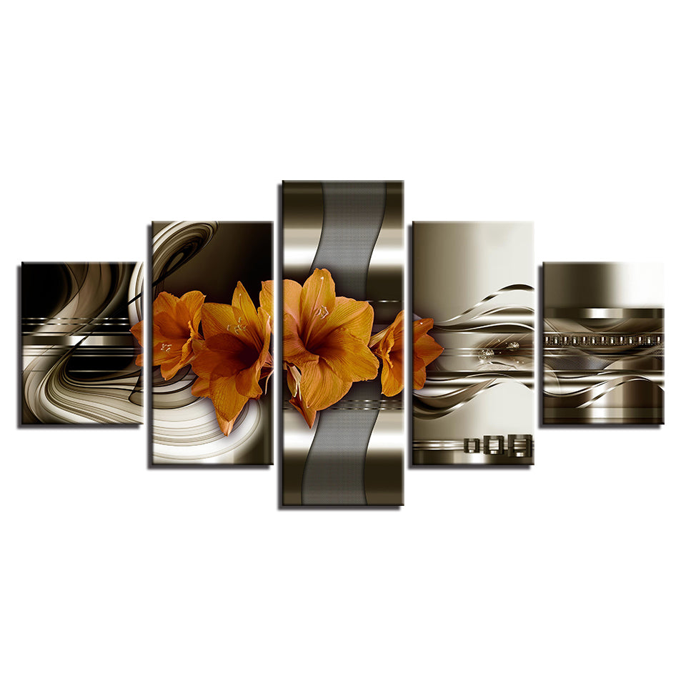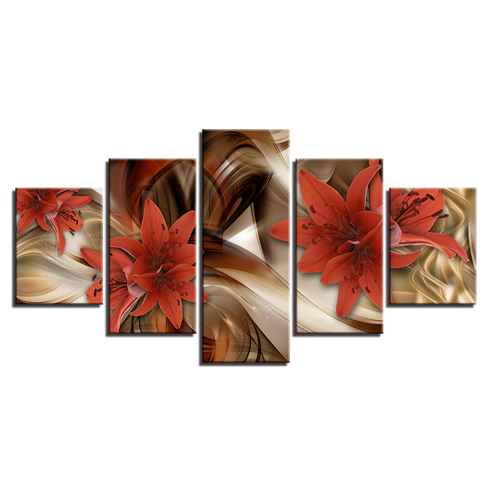 Crisp Orange Lilies 5 Piece - Canvas Wall Art Painting