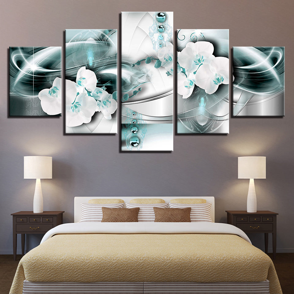 White Orchids And Brilliant Crystals 5 Piece - Canvas Wall Art Painting