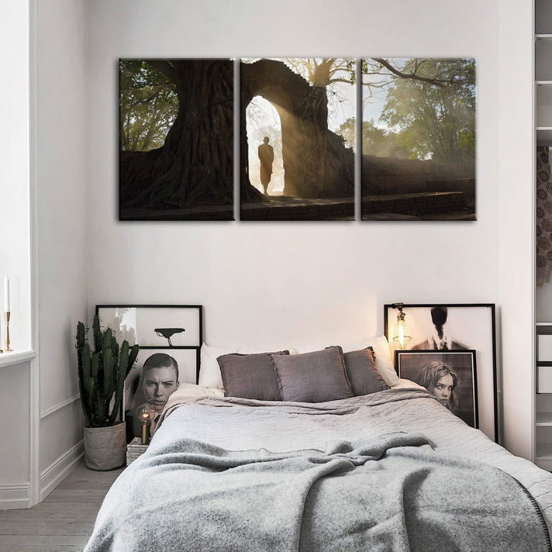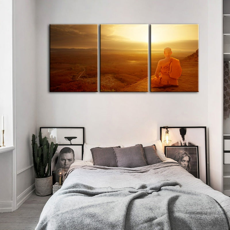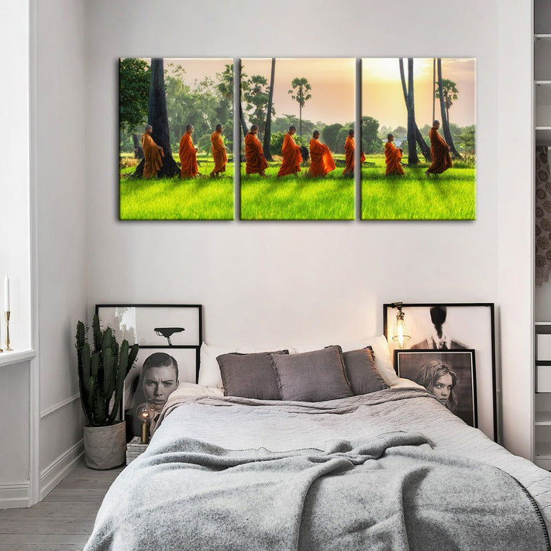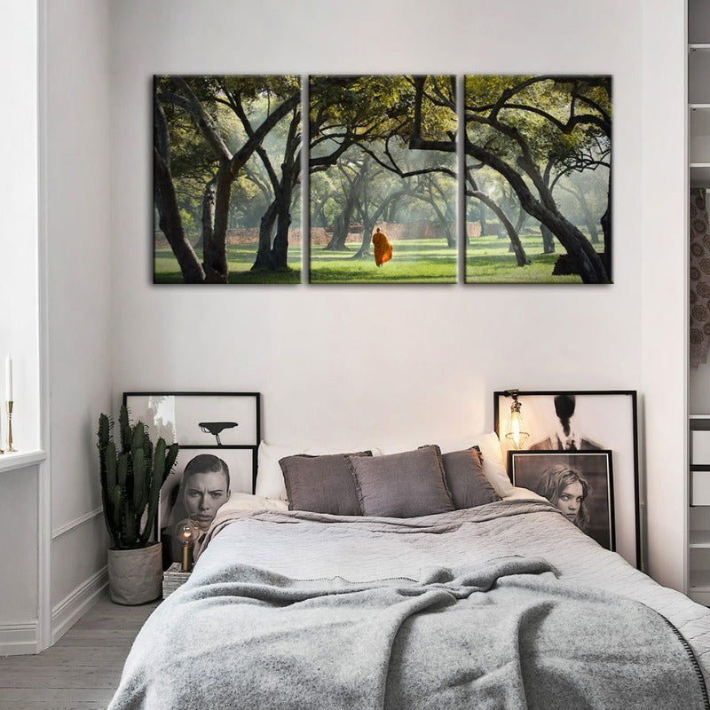 Peaceful Monk Walking-Canvas Wall Art Painting 3 Pieces