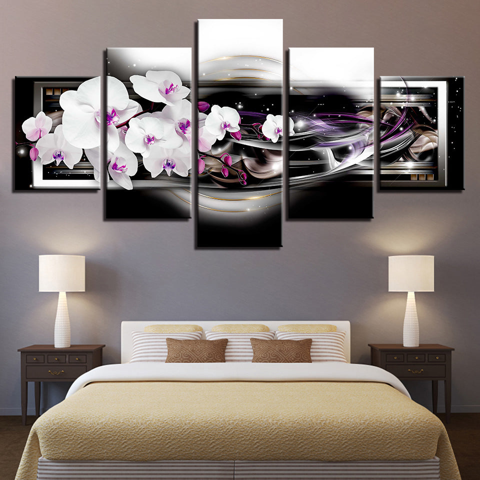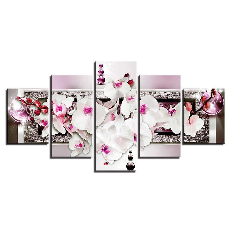 Stunning White And Pink Orchids 5 Piece - Canvas Wall Art Painting