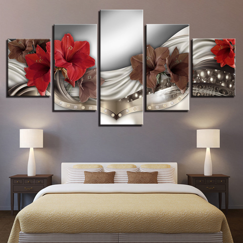 Rich Elegant Red Flowers 5 Piece - Canvas Wall Art Painting