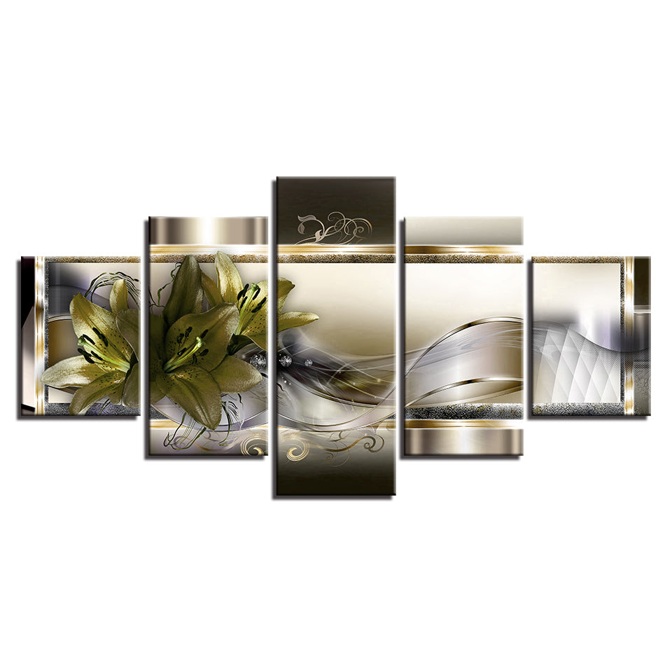 Shadowed Yellow Lilies 5 Piece - Canvas Wall Art Painting