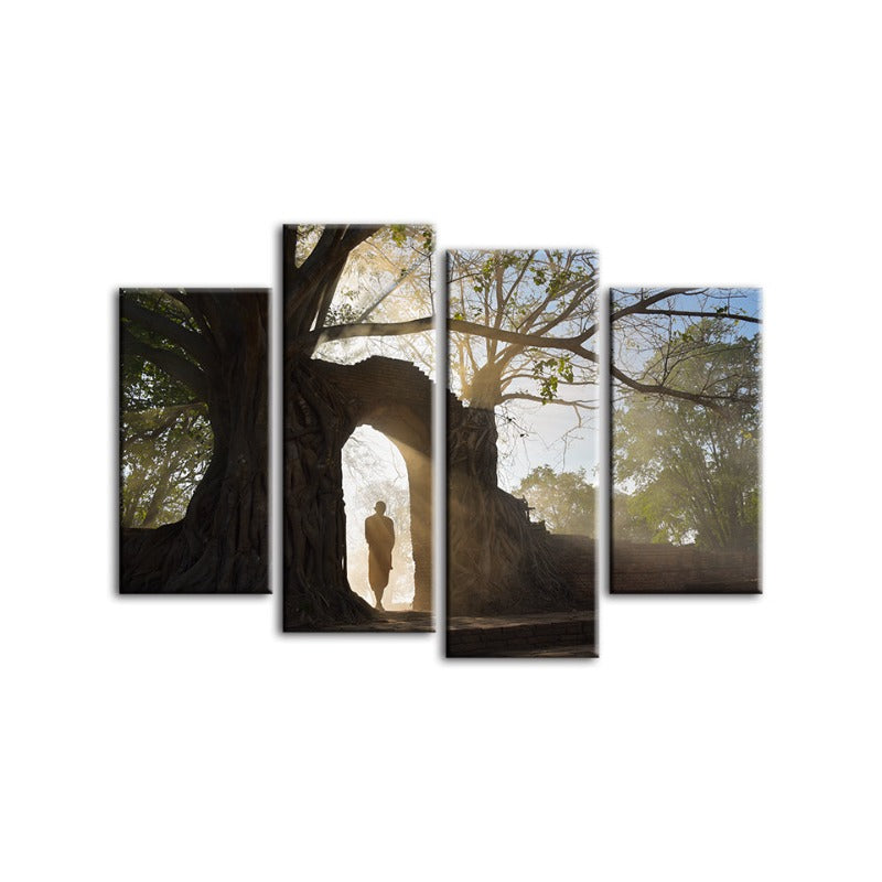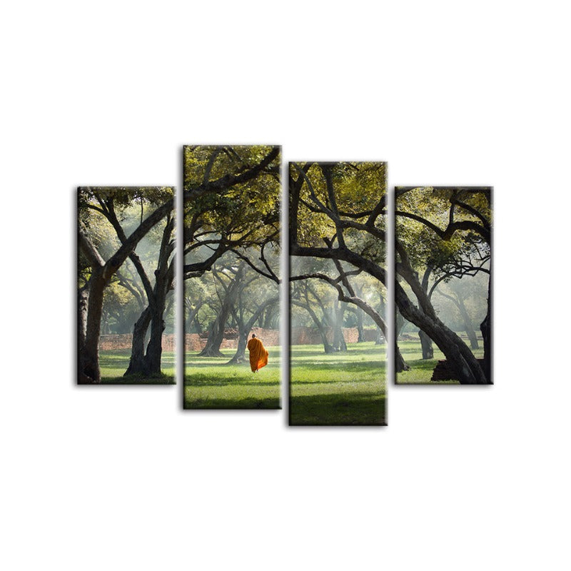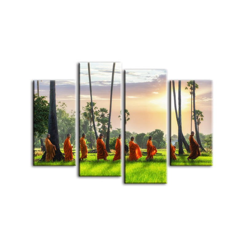 4 Piece Peaceful Monk Walking - Canvas Wall Art Painting