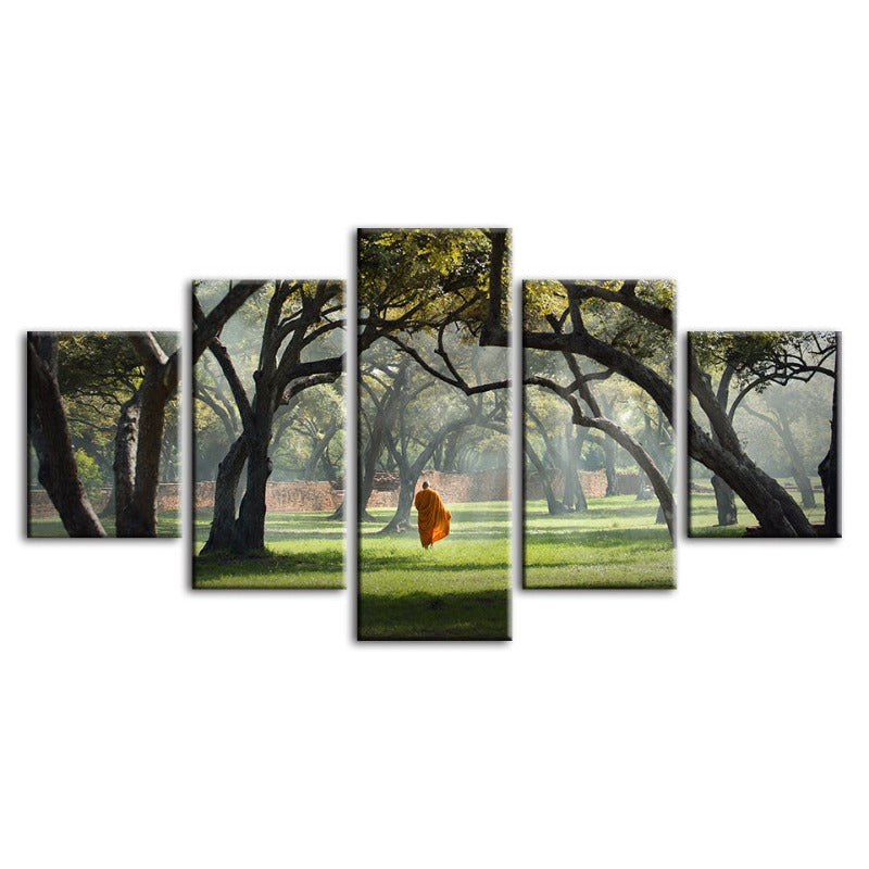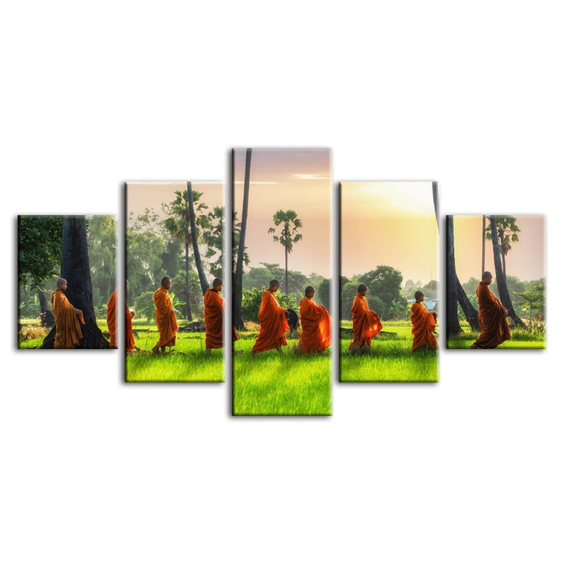 5 Piece Peaceful Monk Walking - Canvas Wall Art Painting