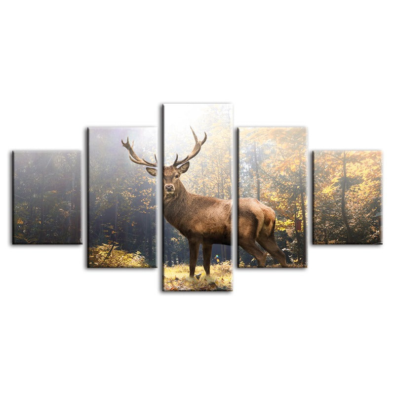 5 Piece Majestic Deer In The Woods - Canvas Wall Art Painting
