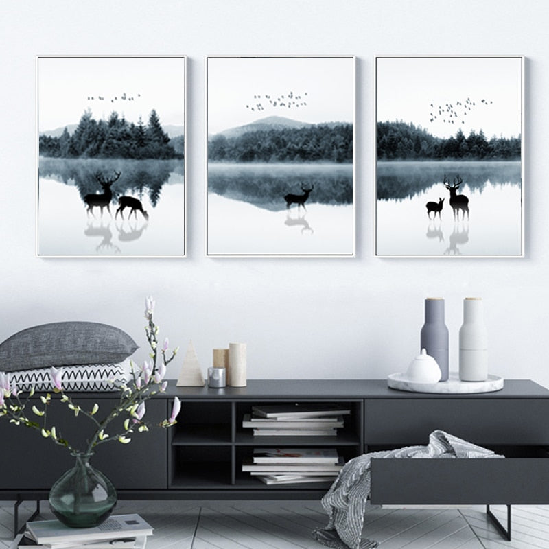 Nordic Nature Canvas Painting Animals - Canvas Wall Art Painting