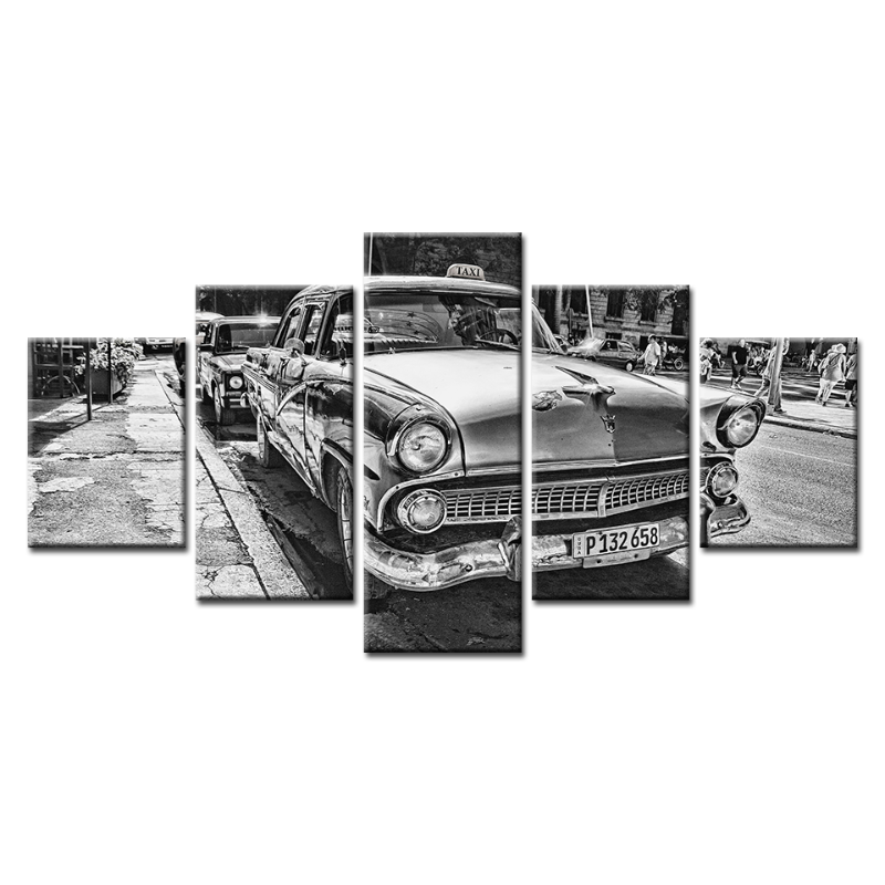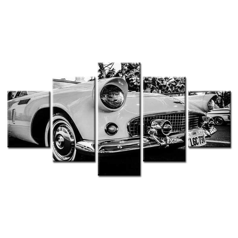 5 Piece Black & White Vintage Car - Canvas Wall Art Painting