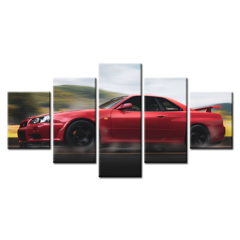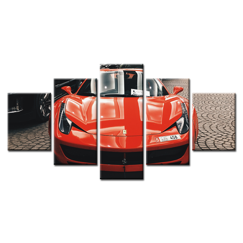 5 Piece Red Classic Metallic Car - Canvas Wall Art Painting
