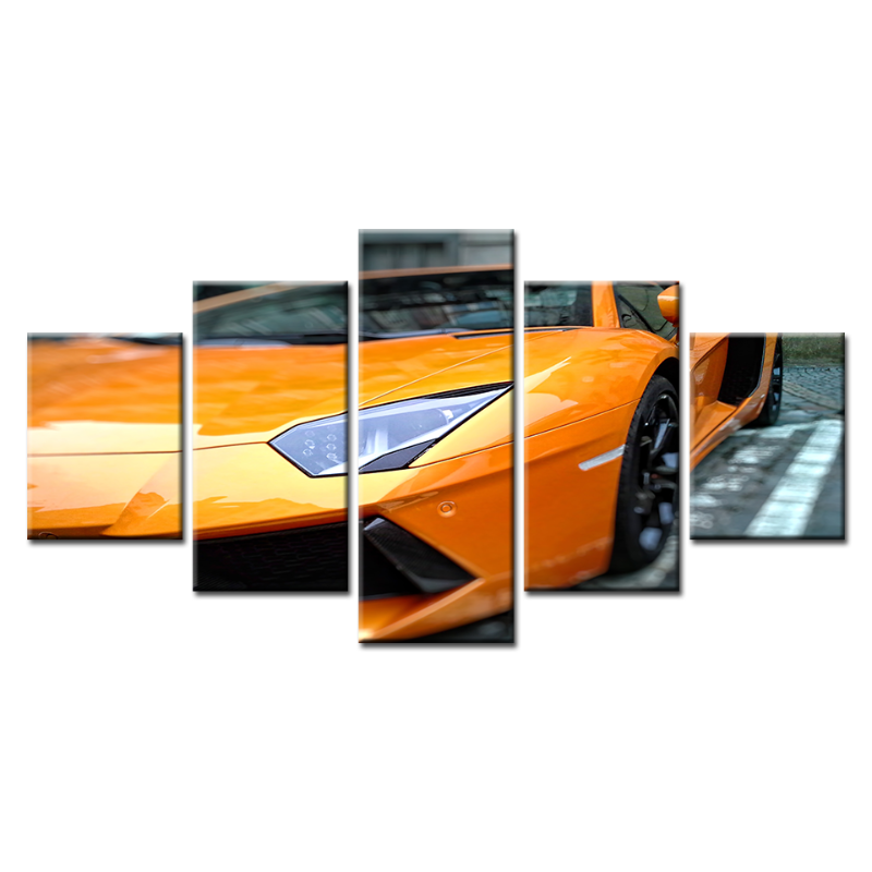 5 Piece Close Up Yellow Classic Car - Canvas Wall Art Painting