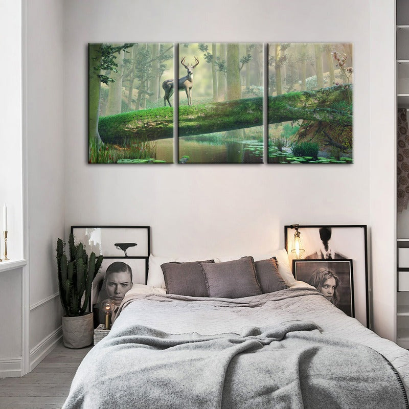 Enchanted Forest Deer-Canvas Wall Art Painting 3 Pieces
