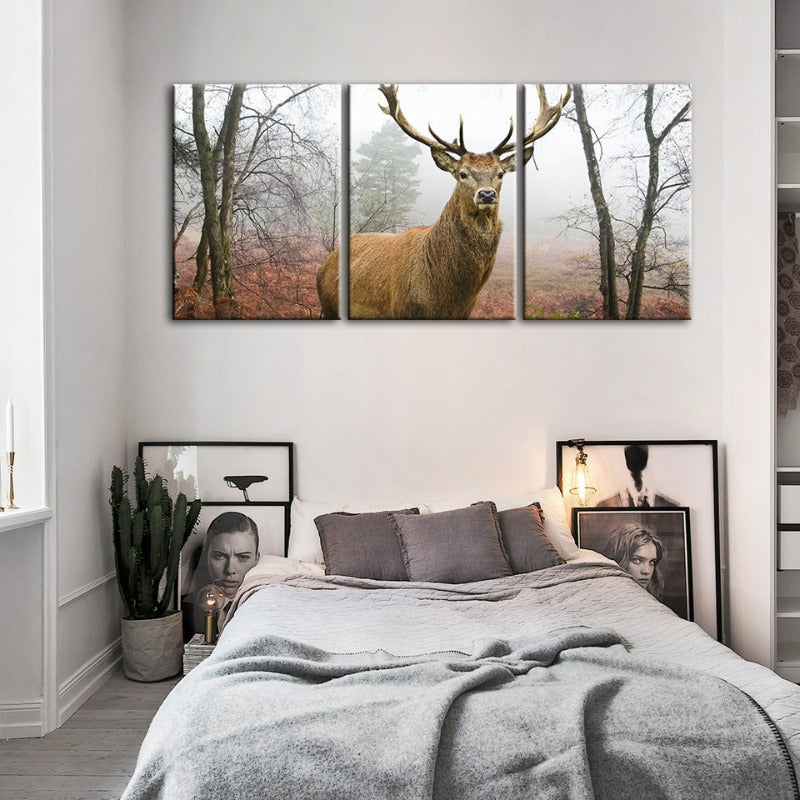 Misty Fall Deer-Canvas Wall Art Painting 3 Pieces