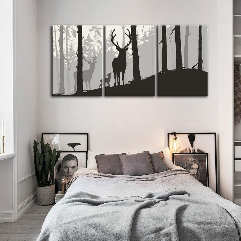 Silhouette Deer Family-Canvas Wall Art Painting 3 Pieces