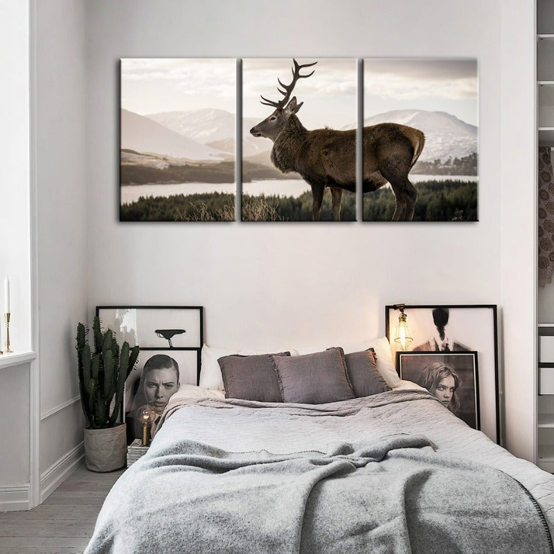 Somber Winter Deer-Canvas Wall Art Painting 3 Pieces