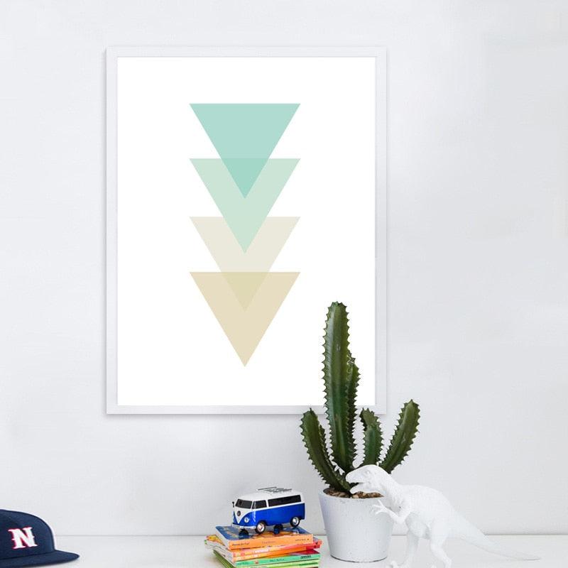 Abstract Mint Color Geometric Triangles - Canvas Wall Art Painting