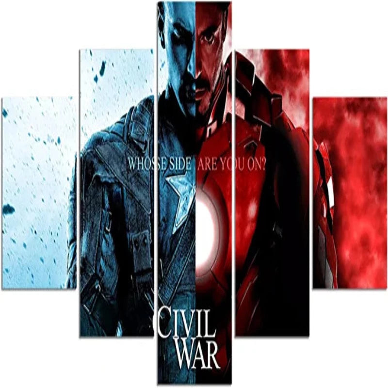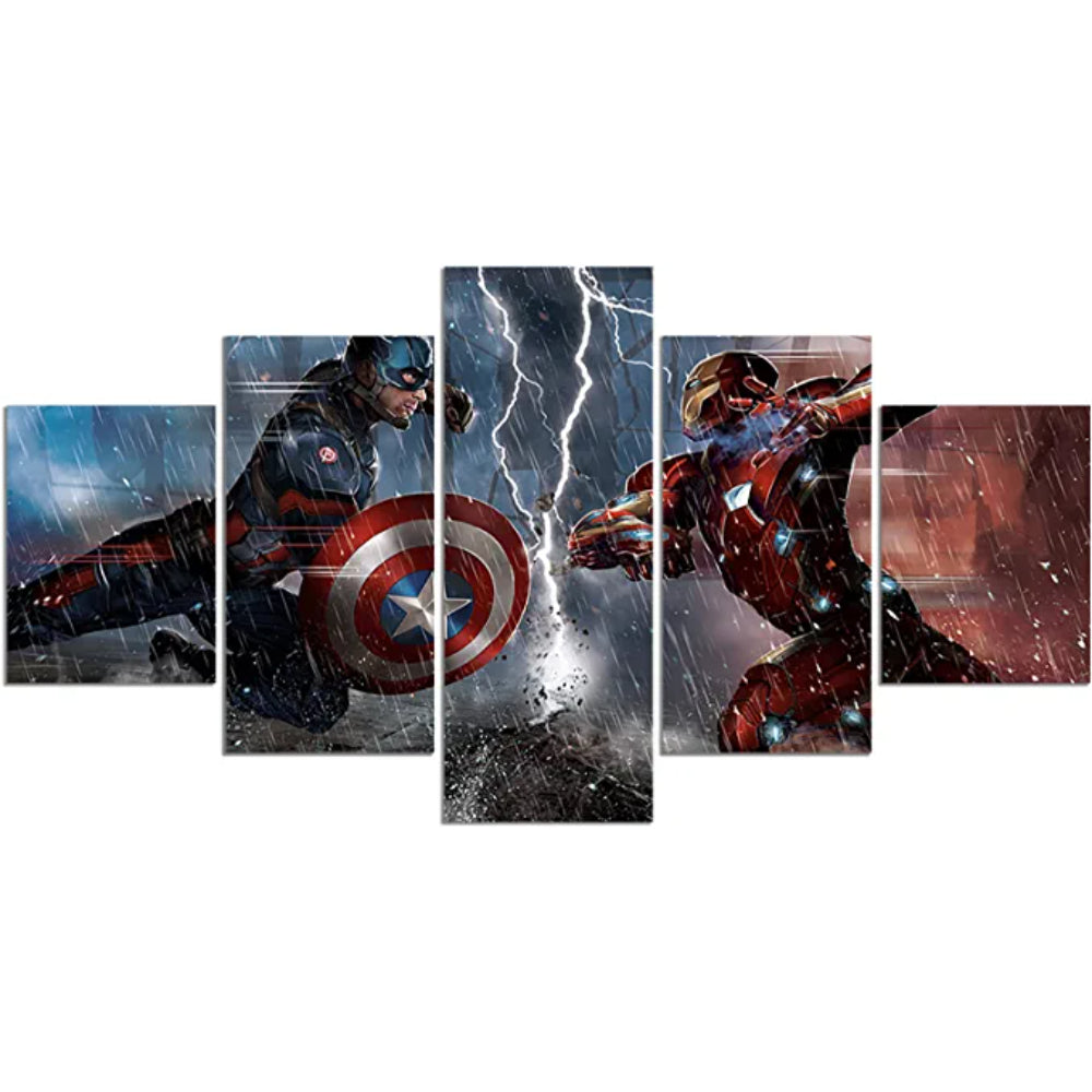 5 Pieces Captain America Vs Iron Man Canvas Painting