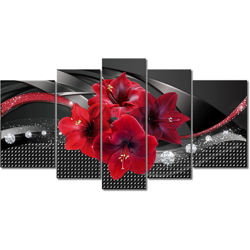 Set Of 5 Lily Floral Canvas Wall Art Painting
