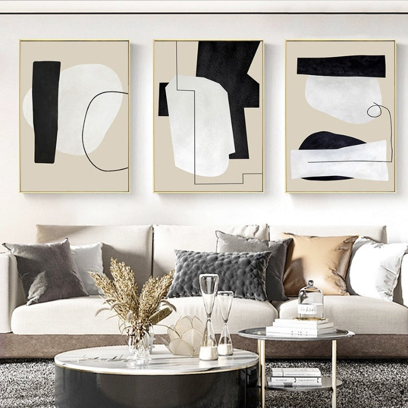 Abstract Geometric Beige & Black Lines - Canvas Wall Art Print