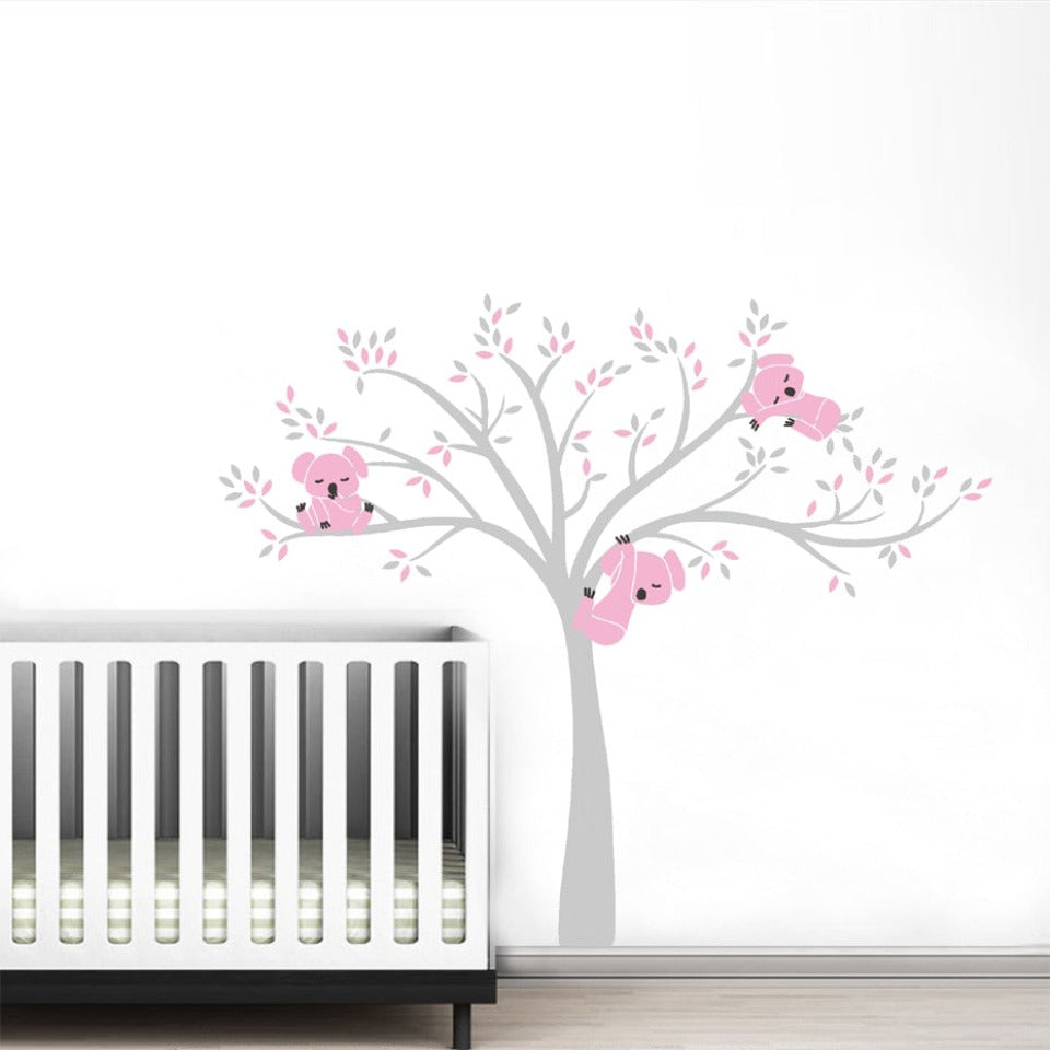 Koala Family on White Tree Branch - Removable Wall Decal