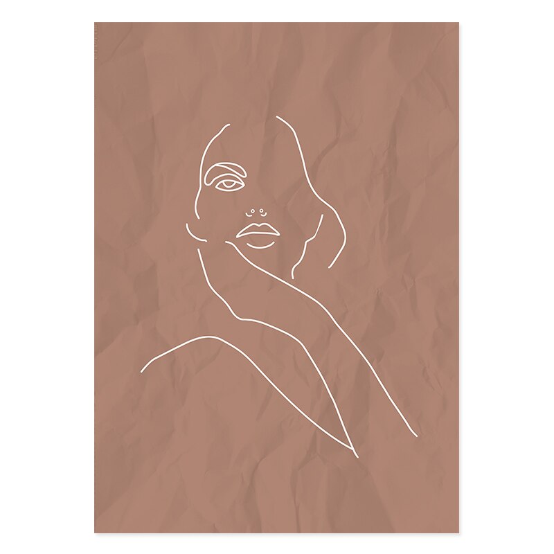 Abstract Hand Sketch Line Floral Boho Beige - Canvas Wall Art Print