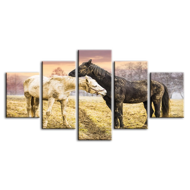 5 Piece Two White Horses - Canvas Wall Art Painting