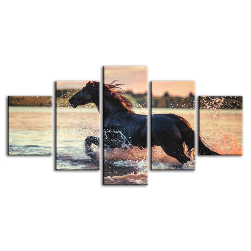 5 Piece Running Horse in Water - Canvas Wall Art Painting