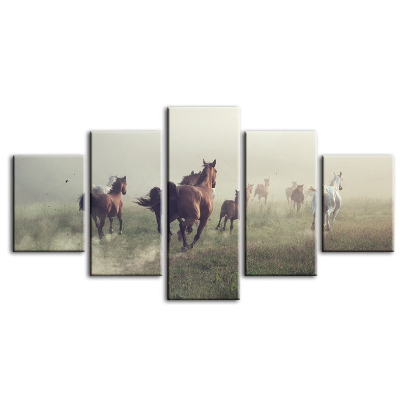 5 Piece Running Horses - Canvas Wall Art Painting