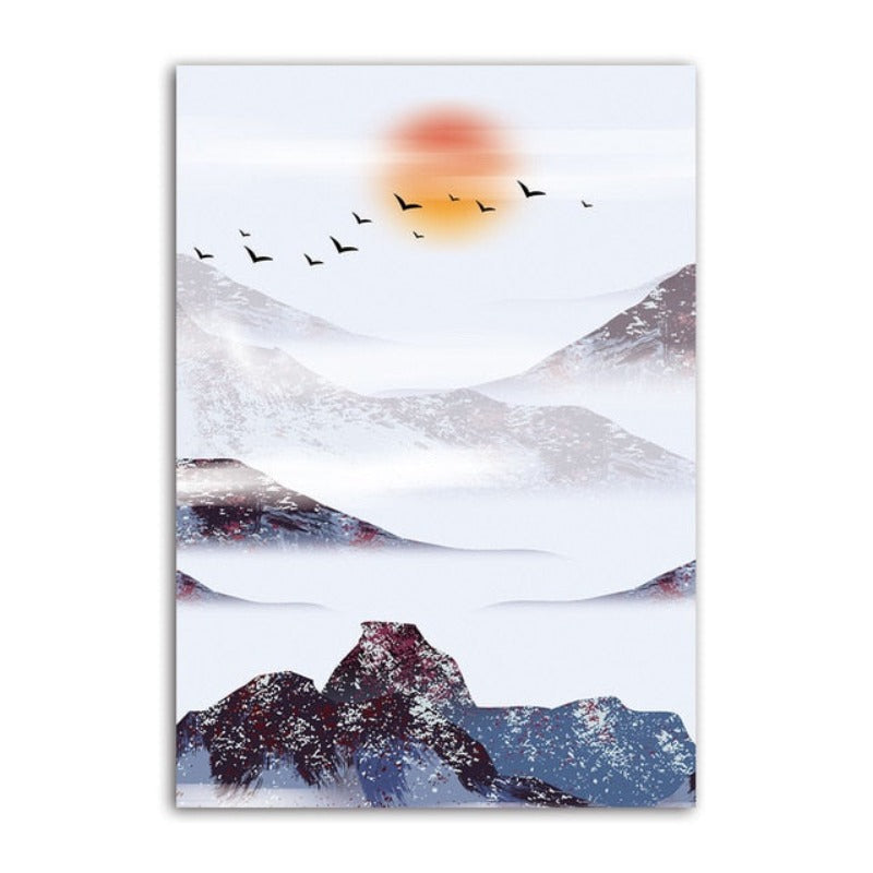Mountain's Red Sun - Canvas Wall Art Painting