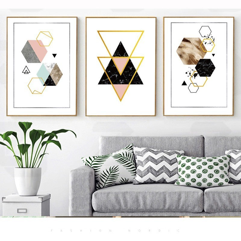 Modern Abstract Geometry Gold Letters - Canvas Wall Art Painting