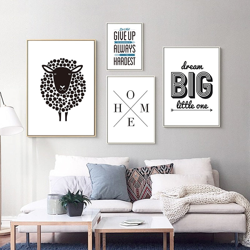 Minimalist Black And White Inspiring Letters - Canvas Wall Art Painting