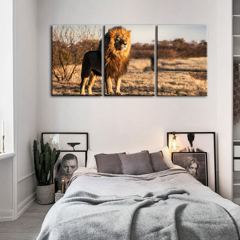 Majestic Lion Bathed In Sunlight-Canvas Wall Art Painting 3 Pieces