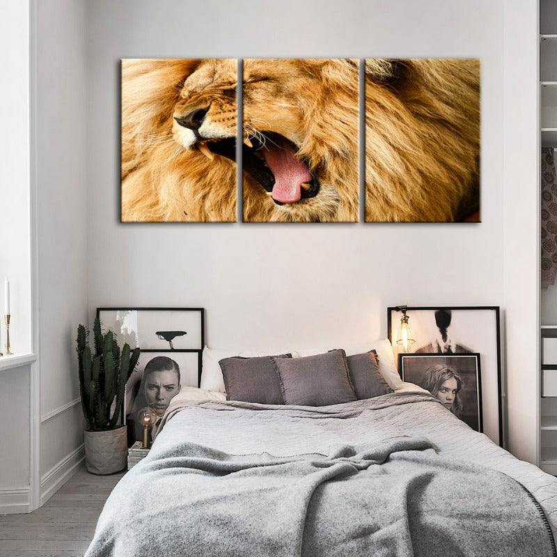 Enraged Lion's Roar-Canvas Wall Art Painting 3 Pieces