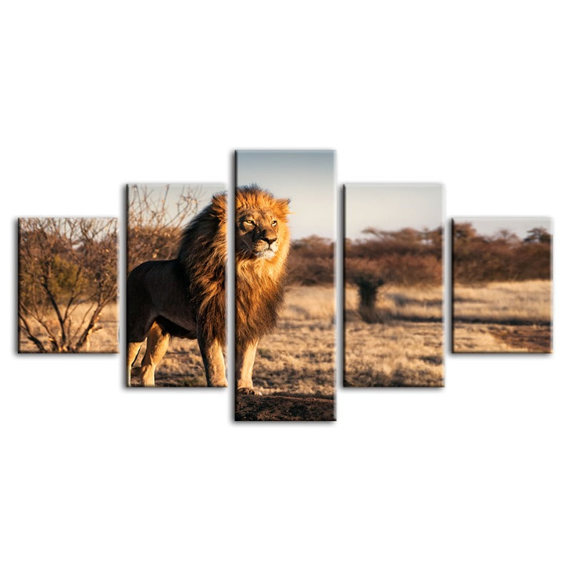 5 Piece Majestic Lion Bathed In Sunlight - Canvas Wall Art Paintings