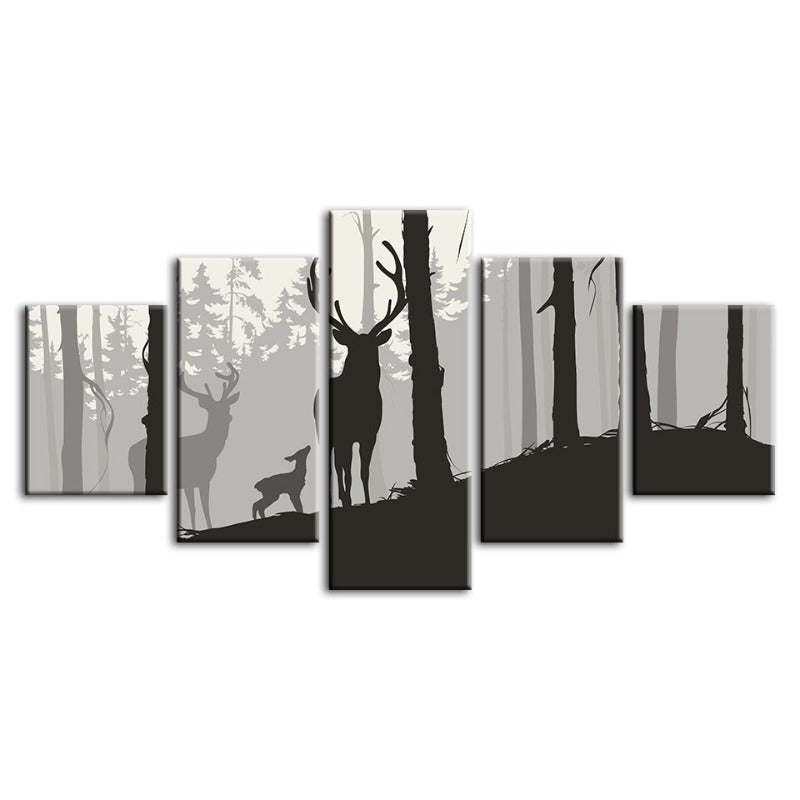 5 Piece Silhouette Deer Family - Canvas Wall Art Painting