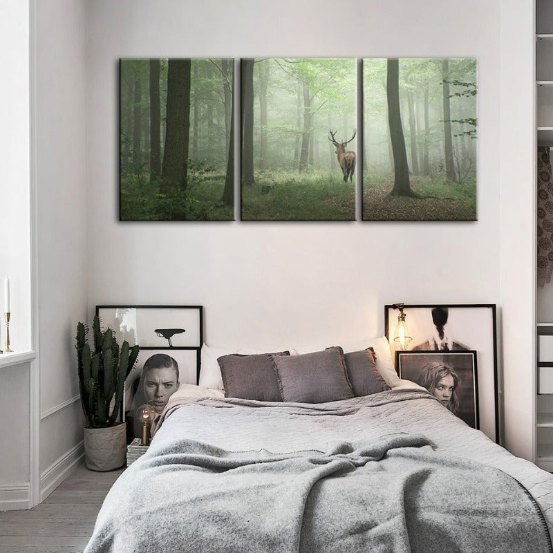 Misty Mystical Deer In The Woods-Canvas Wall Art Painting 3 Pieces