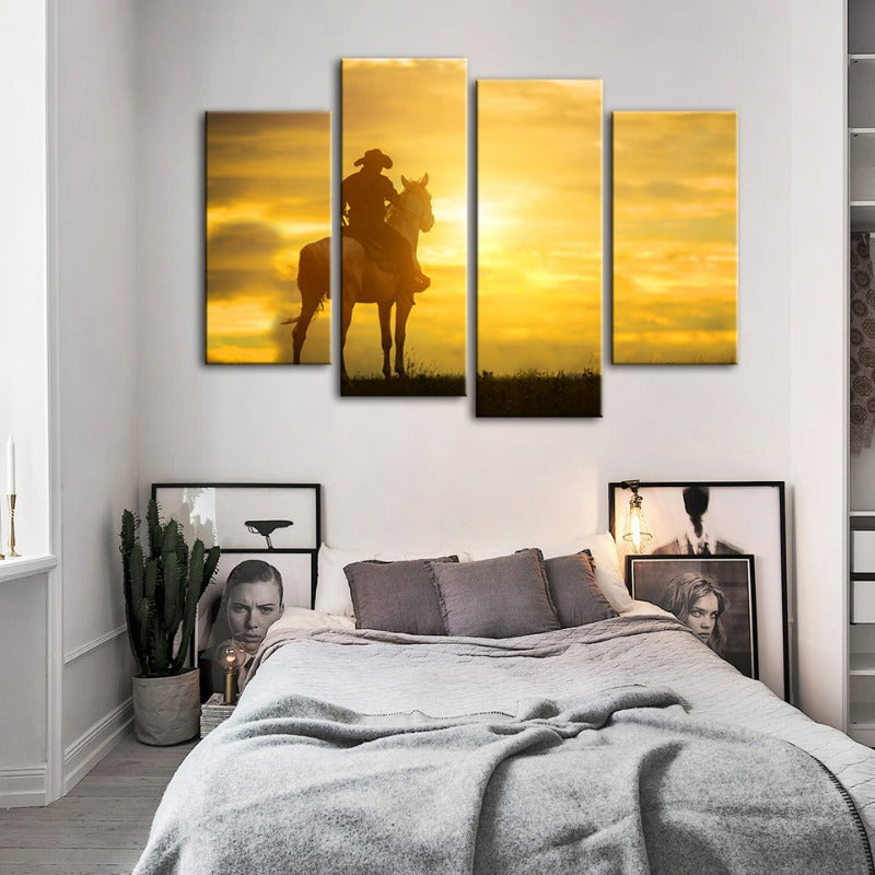 A Cowboy And His Steed-Canvas Wall Art Painting 4 Pieces
