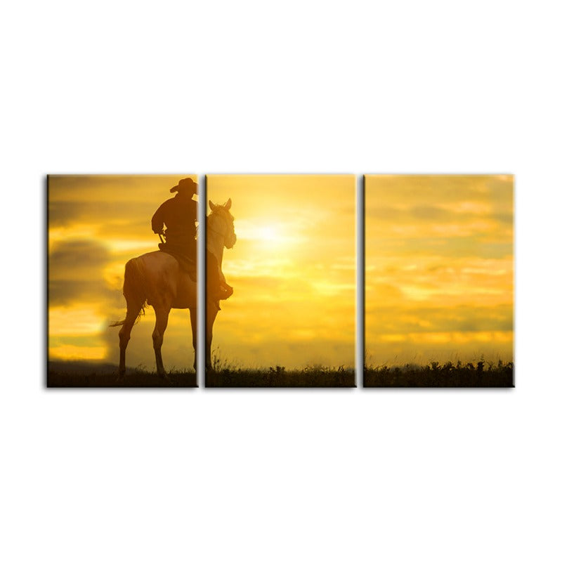 Cowboy And His Steed - Canvas Wall Art Painting 3 Pieces