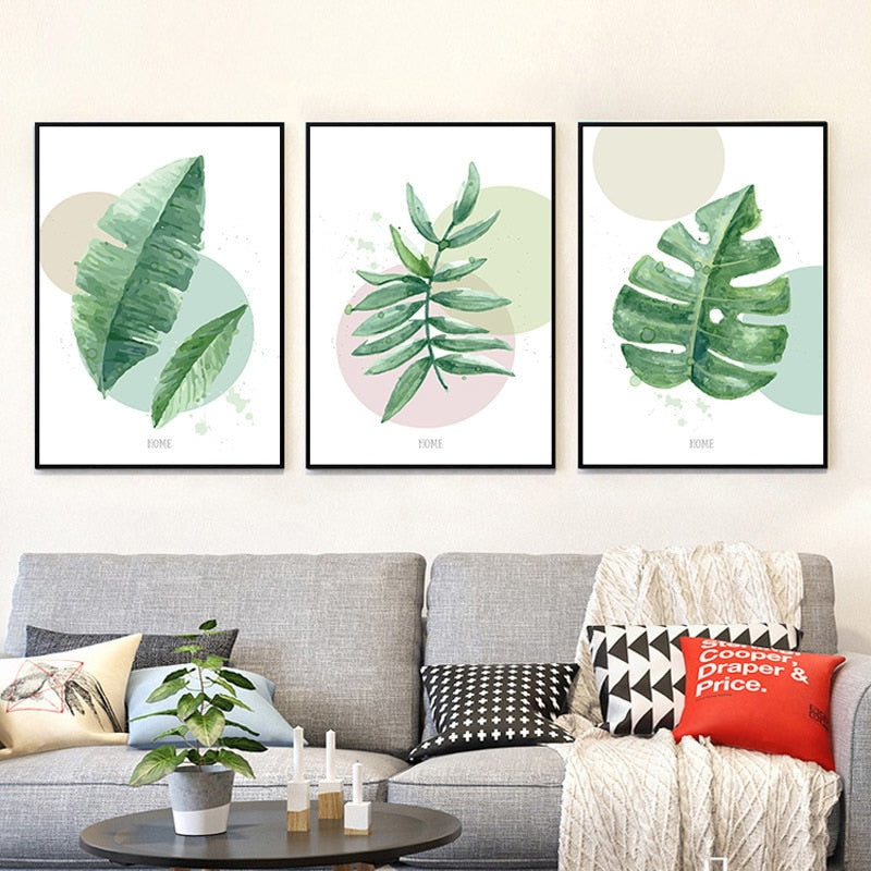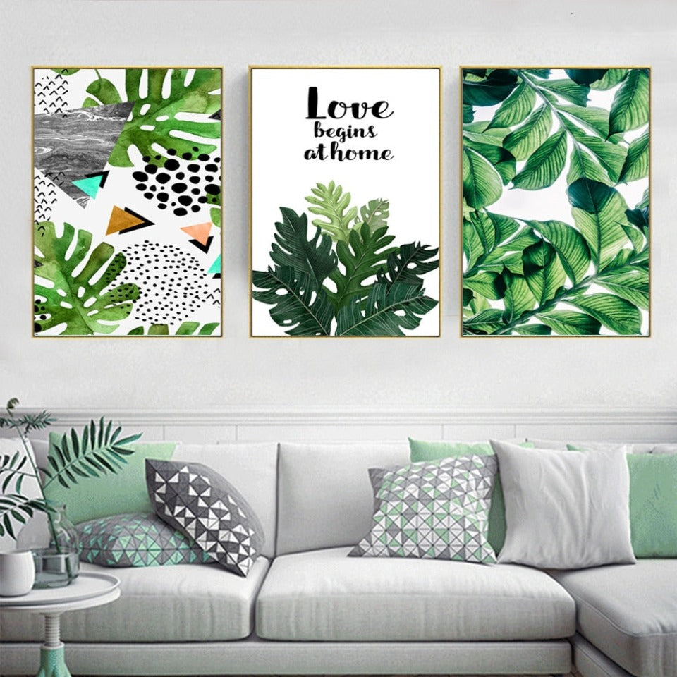 Scandinavia Tropical Green Leaf Nature Pictures - Canvas Wall Art Painting