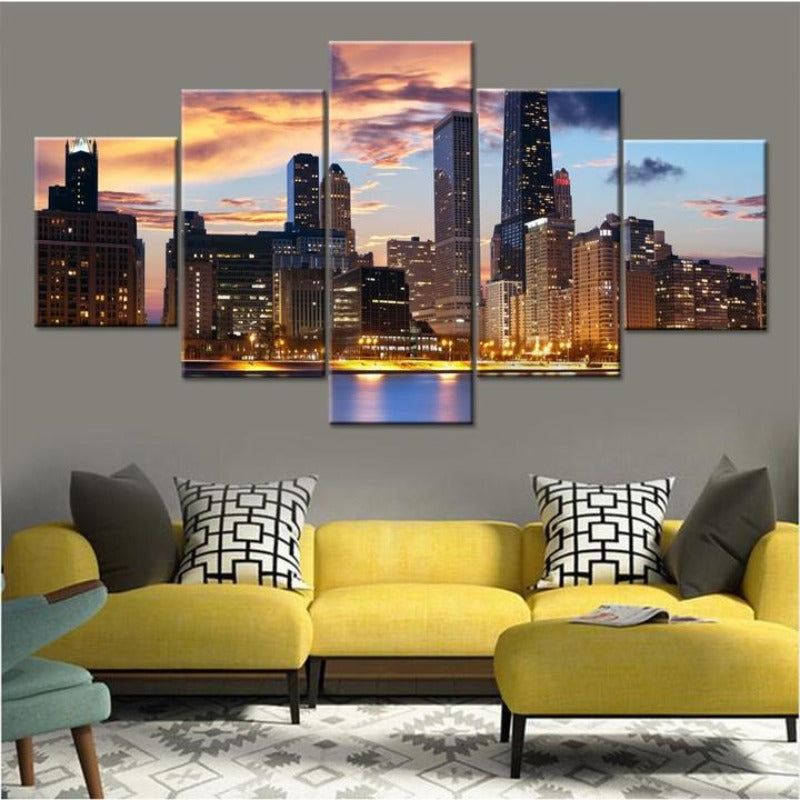 Snow Capped Mountains - 5 Piece Canvas Wall Art Painting | Nature Inspired Wall Art