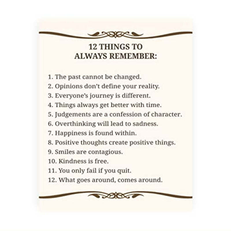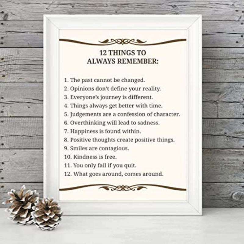 This print is just one of many we offer. These "12 Things To Always Remember"- Poster is a positive quotation wall post that you can easily hang in your office, home, or drawing room for people to see and get inspired. This is also the best option for gifting your loved ones on their birthdays, anniversaries, etc. It will keep you motivated all day long.