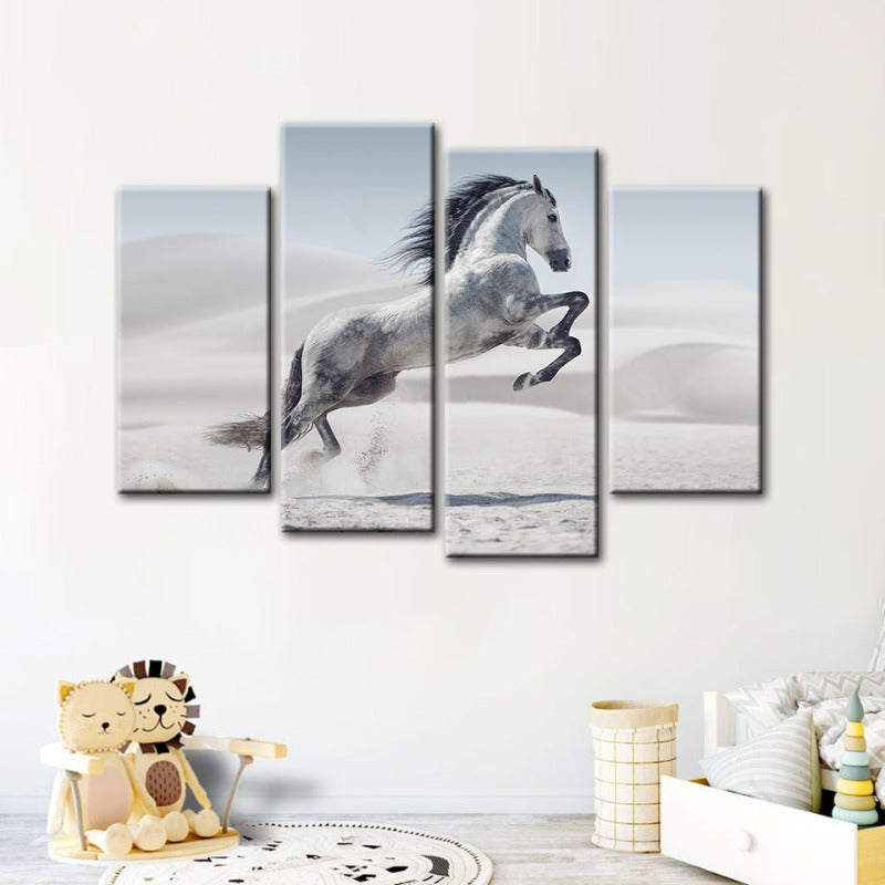 4 Piece Jumping White Horse - Canvas Wall Art Painting is a premium canvas that adds a fresh touch to your decor. The Wall Art is perfect to decorate your bedroom, dining room, living room, office, dormitory, hotel lobby, and more! Mix and match your favorite pieces to create an eye-catching feature wall.