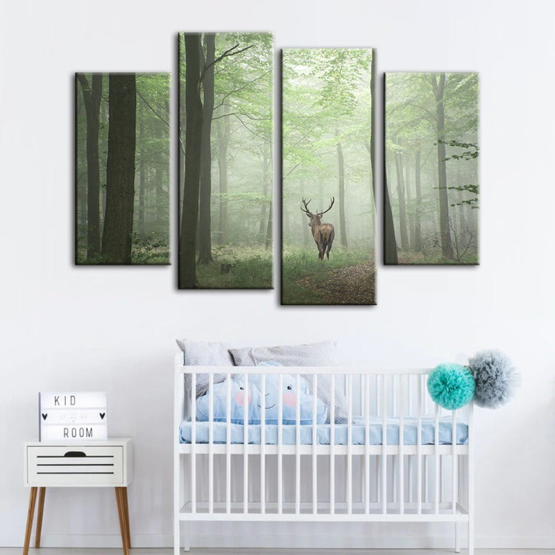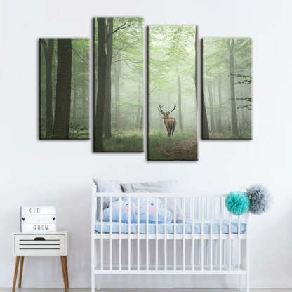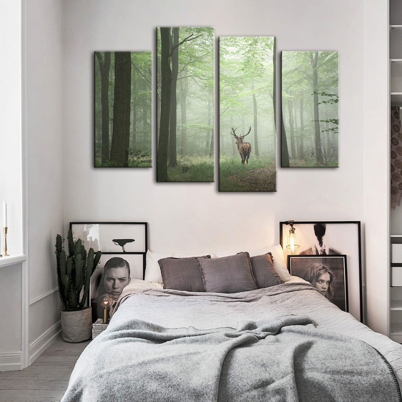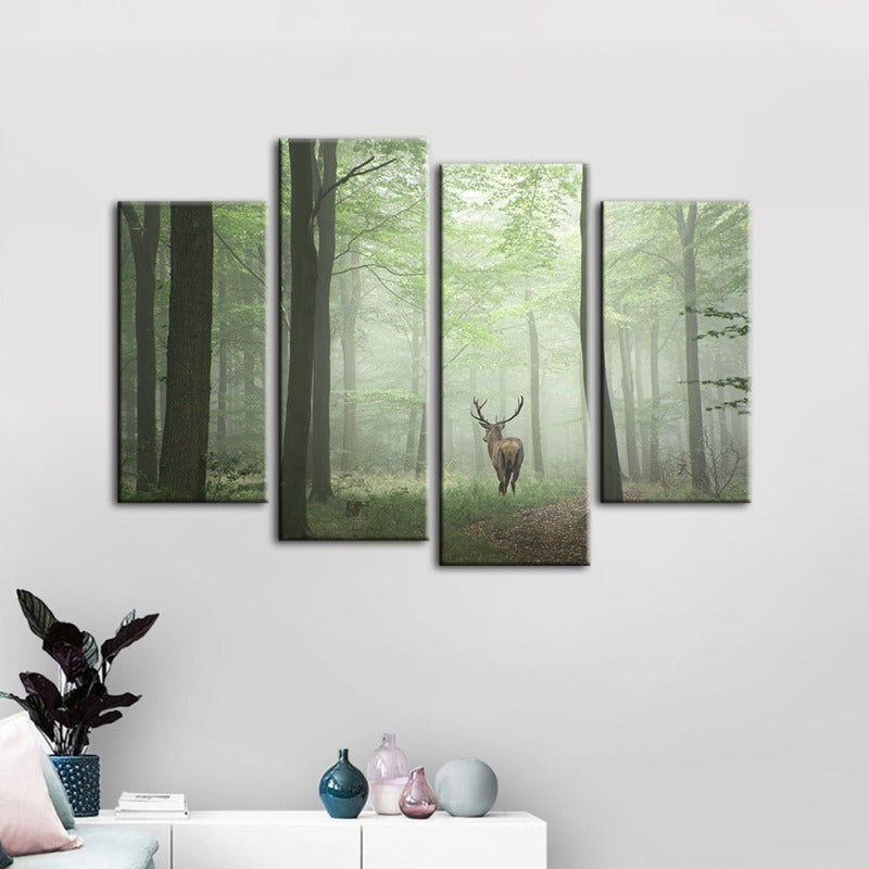 Misty Mystical Deer in the Woods 4 Piece - Canvas Wall Art Painting is a premium canvas that adds a peaceful touch to your décor. The canvas features a lone deer standing within the mystical setting of a mist-laden forest.