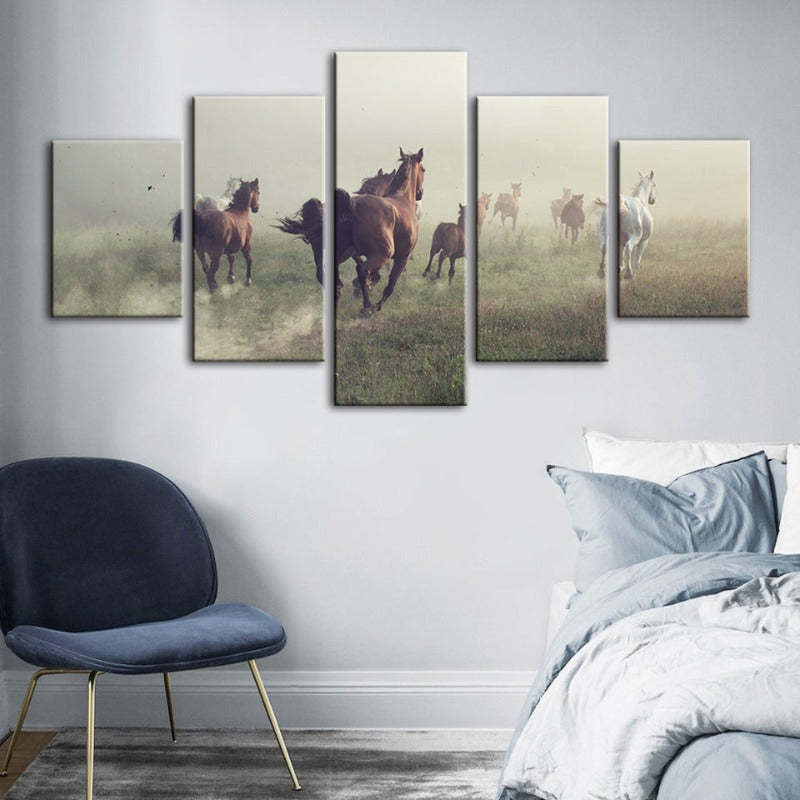 5 Piece Running Black Horse - Canvas Wall Art Painting is a premium canvas that brings life to your décor. The canvas features an illustration of a horse across five canvases. This is great to place in a bedroom, living room, or dining room.