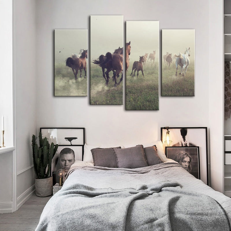 4 Piece Running Horses - Canvas Wall Art Painting is a premium canvas that adds a fresh touch to your decor. The Wall Art is perfect to decorate your bedroom, dining room, living room, office, dormitory, hotel lobby, and more! Mix and match your favorite pieces to create an eye-catching feature wall.