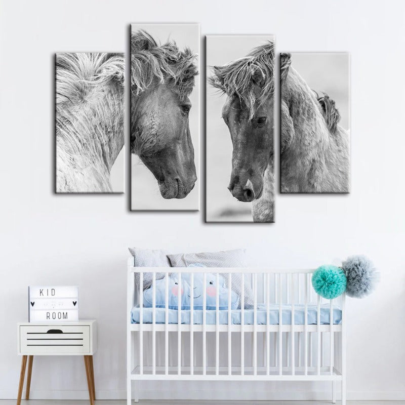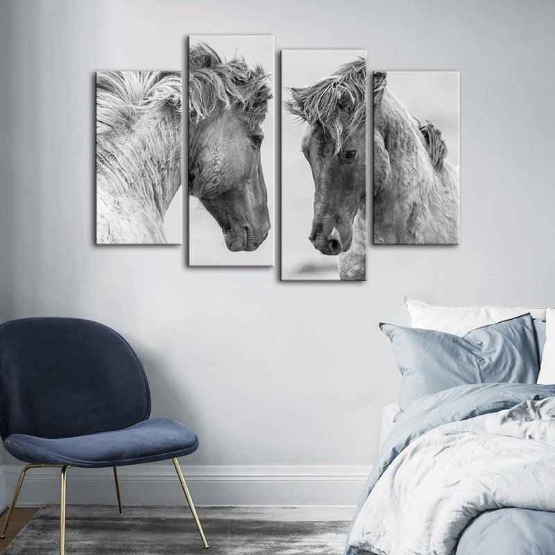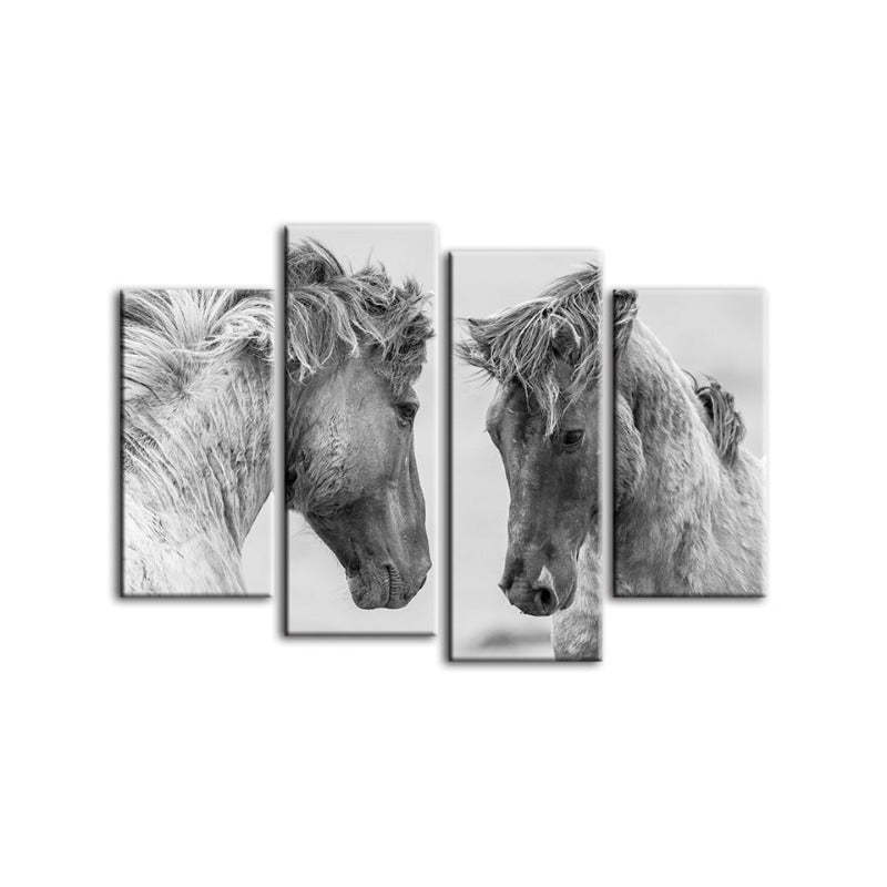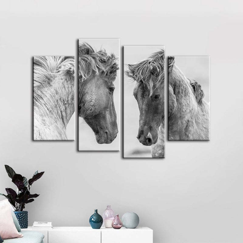 4 Piece Two White Horses - Canvas Wall Art Painting is a premium canvas that adds a fresh touch to your decor. The Wall Art is perfect to decorate your bedroom, dining room, living room, office, dormitory, hotel lobby, and more! Mix and match your favorite pieces to create an eye-catching feature wall.