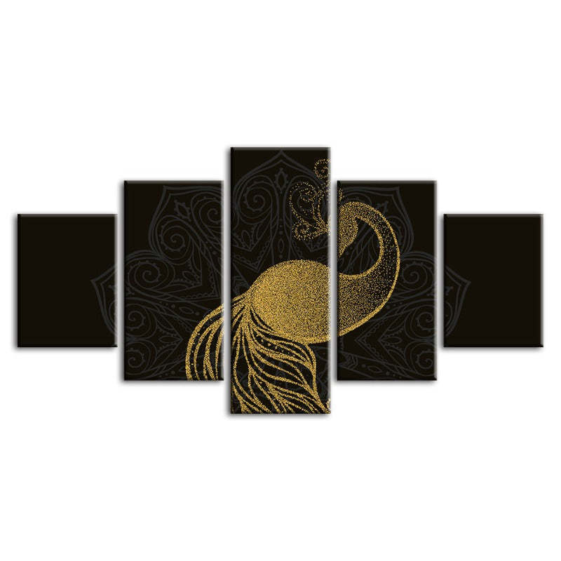Abstract Golden Mandala Peacock 5 Piece - Canvas Wall Art Painting is a premium canvas that adds a peaceful touch to your décor. The canvas features a golden Mandala like the pattern of an abstract peacock.