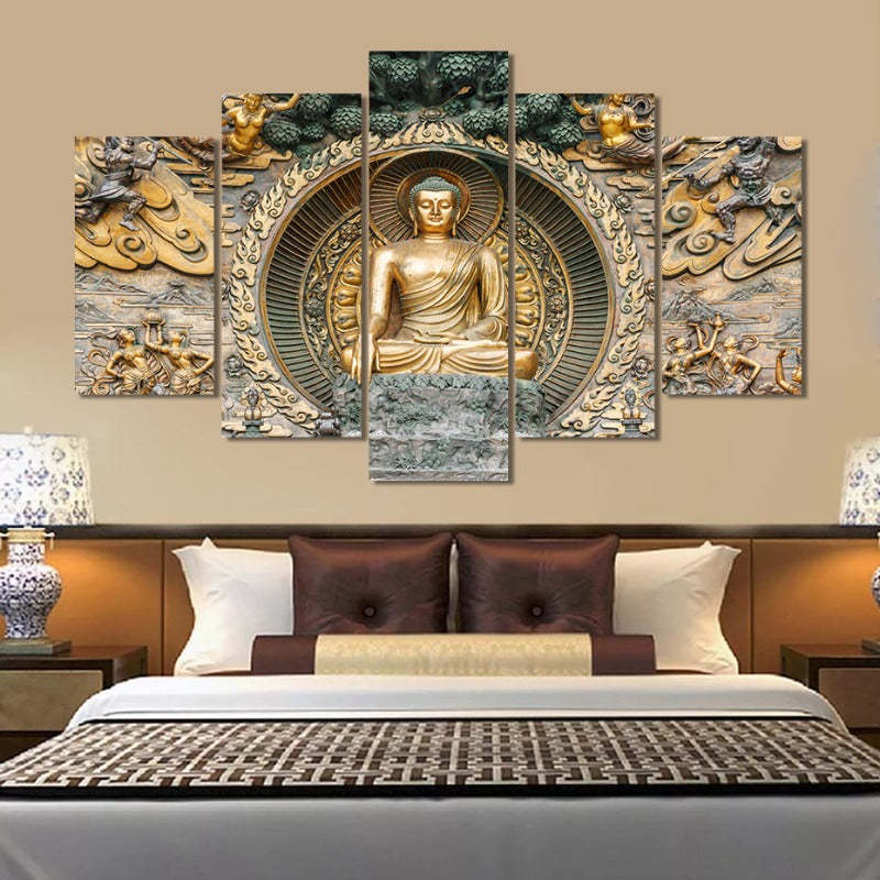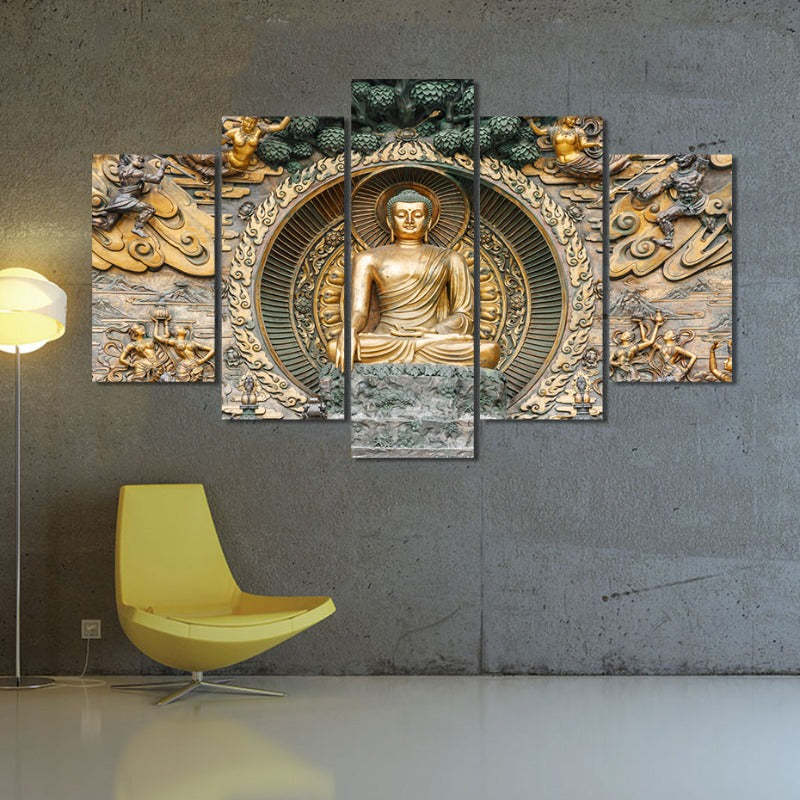 5 Piece Abstract Lingshan Buddha Statue - Canvas Wall Art Painting is a premium canvas that brings life to your décor. The canvas features an illustration of a close-up of the beautiful Lingshan Buddha Statue across five canvases. This is great to place in a bedroom, living room, or dining room.